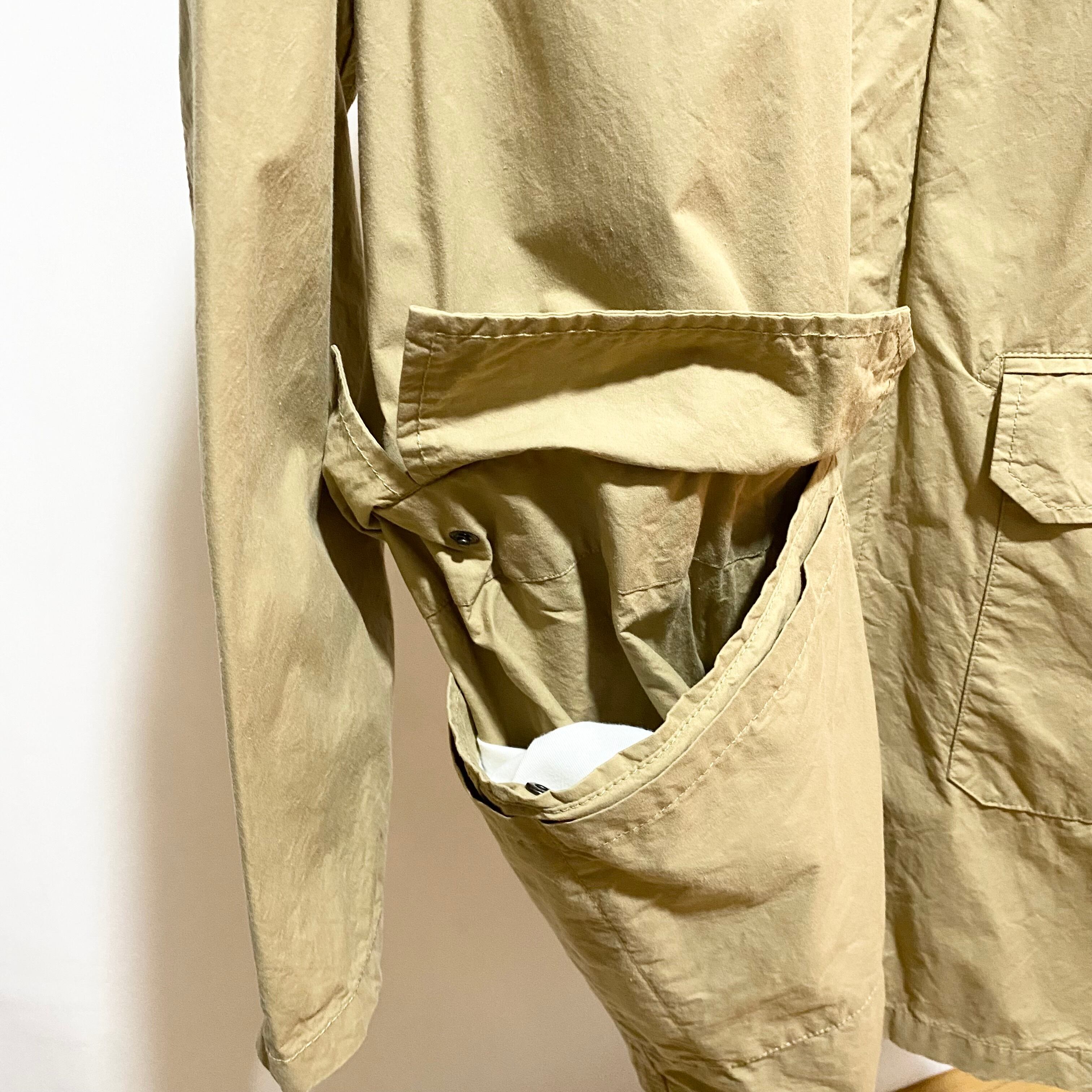 その名の通り手ぶらでウロチョロ出来るポケット沢山のコート。内側外側とかなりのギミックが効いた仕掛けのポケットが盛りっと付いております。特に右後ろにかけてぐるりなポケットは大きく開いて便利◎◎◎ 全体的にパッカリングも良く出ていて雰囲気も抜群です◎◎◎
