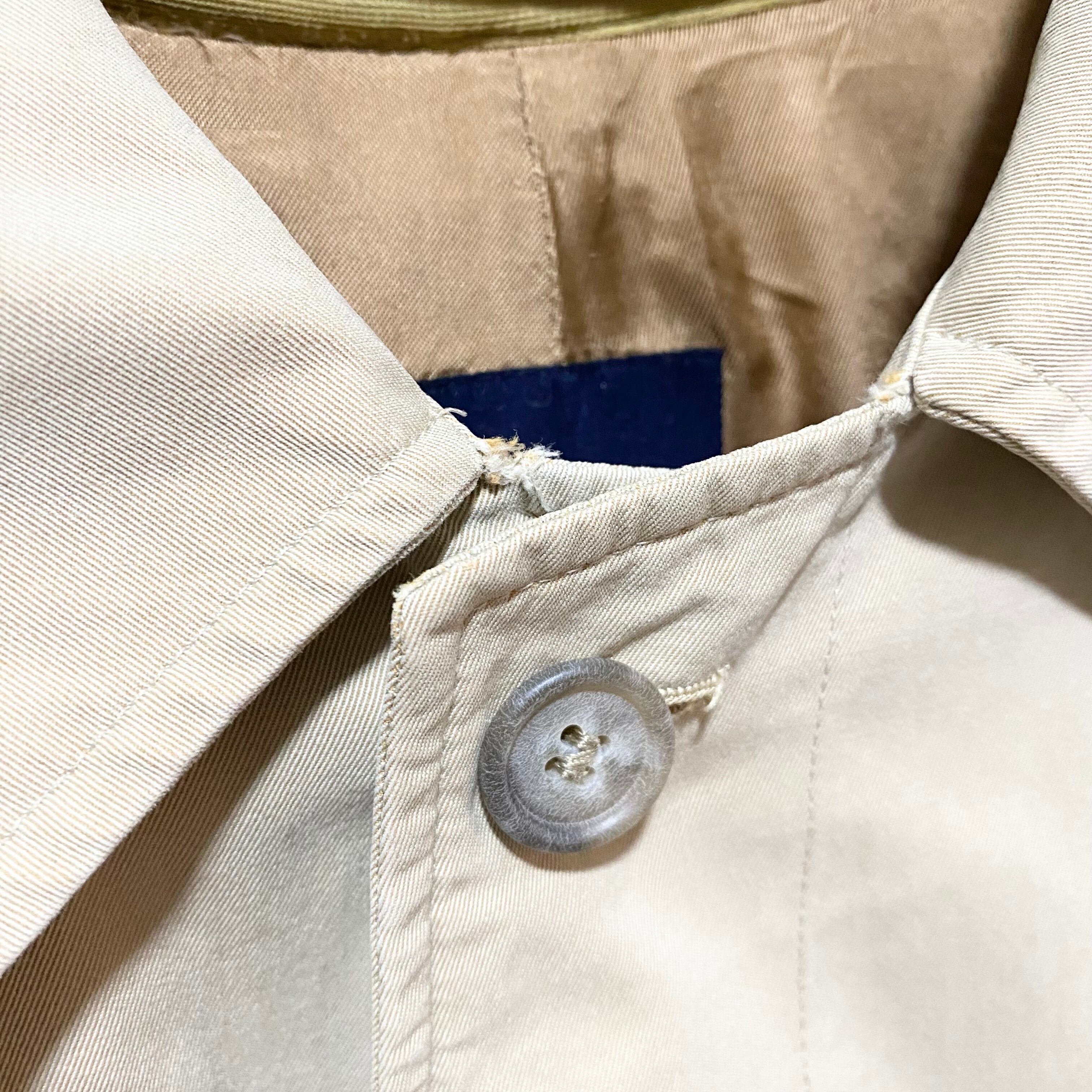 そして袖口にはリペア痕が有りますし(少し袖を詰めて折り返してリペアしてますので着用時は見えません)襟元や裾など擦り切れのダメージも。このリアルに着られたダメージと言うのは古着特有の物。でも味とかでごまかさず素直にお安く出すのが当店流です 笑