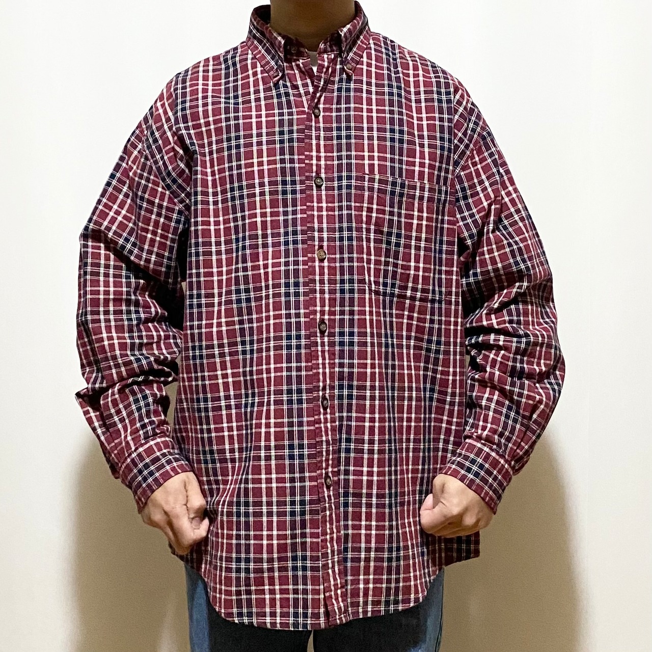 Eddie bauer CHK B.D Shirt Burgundy Black White 90s