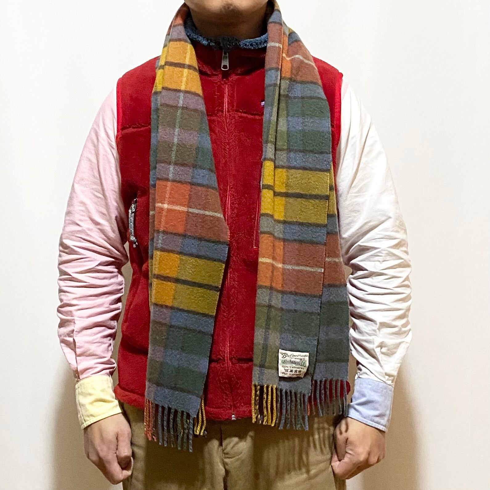 どこか懐かしい雰囲気のチェックにカシミヤ100%◎◎◎ 今ジョンストンズでカシミヤマフラーだとかなり高額になってますので、ユーズドで良品を見つけるのは賢い買い方かと思います。店主も古いカシミヤのマフラーを数年使ってたりします。やっぱり肌触りが段違い。