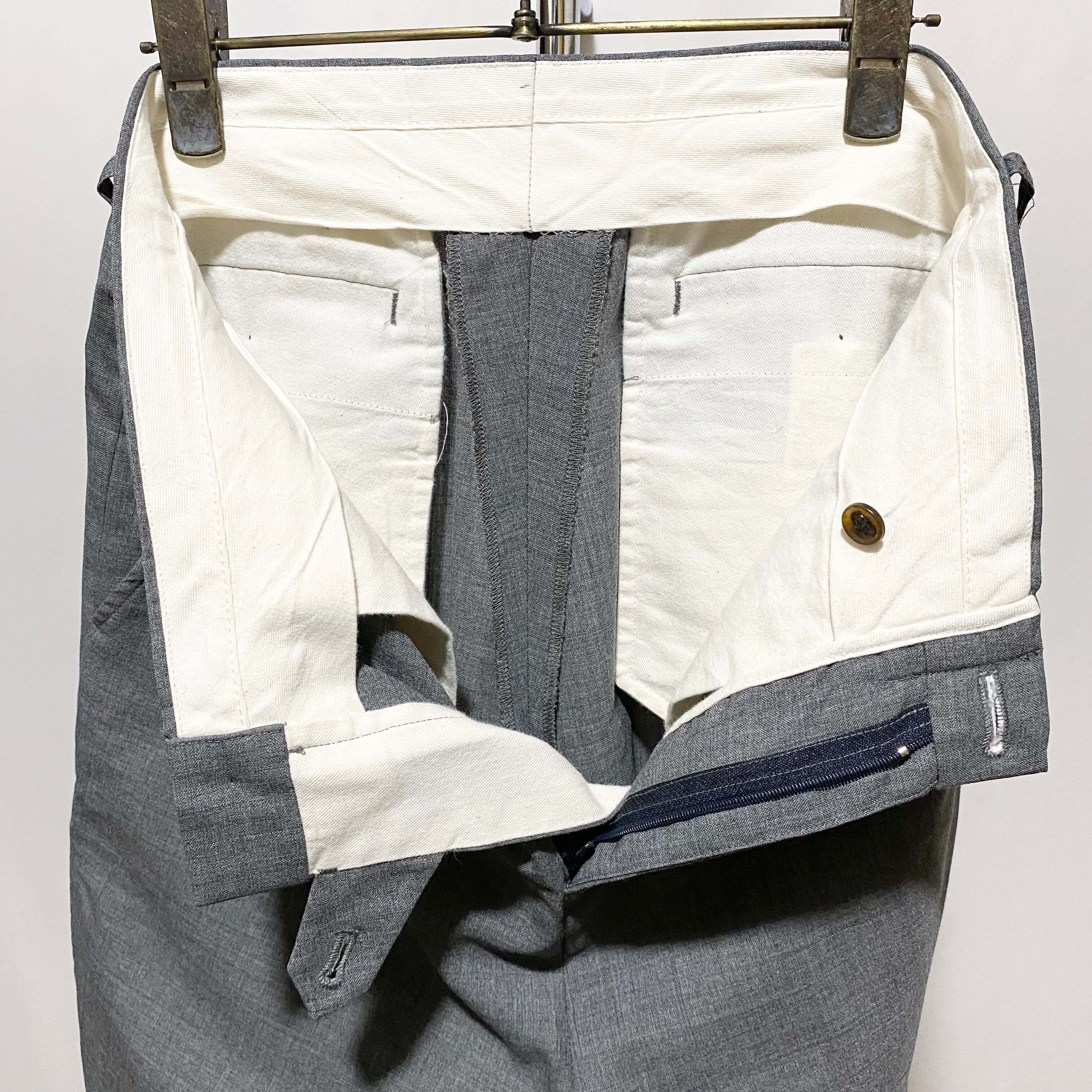 1タックで深めの股上はかなりクラシックな印象、でも仕立ての印象はチノーズ。テーパードも効いていてまるでジョッパーズのようなゆとりのある腰回りに遊びがあります。グラミチ的な股割りも!(でも基本は普通のボトムス)左サイドのコンシールジップの隠しポケット(ナニを入れるかは貴方次第)は長短共通。長いのはしっかりテーパーしてて短いのはバミューダ的な丈感になってます◎◎◎