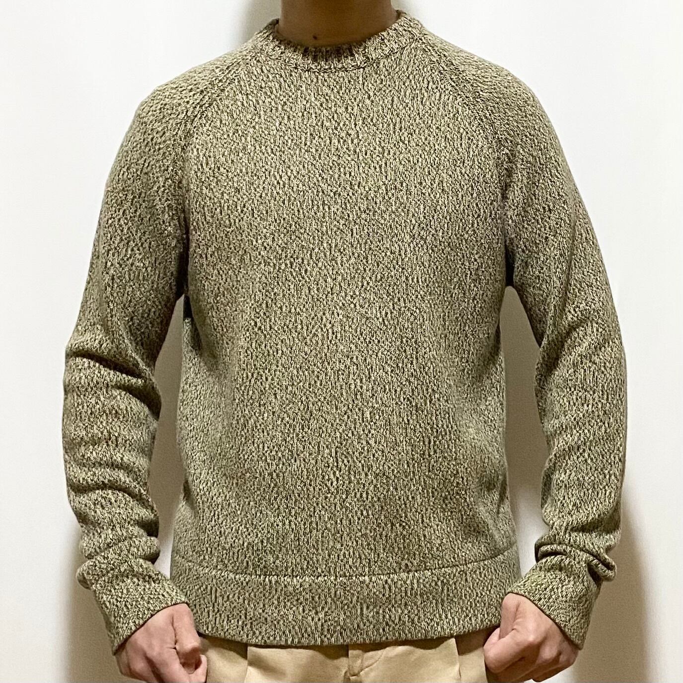 クルーネックの普通のニットですが、裾や袖口を強めのリブで絞っていないのでシルエットも古臭さ皆無です(絞った丸いシルエットも好きだけどコレの方が現代的って話)