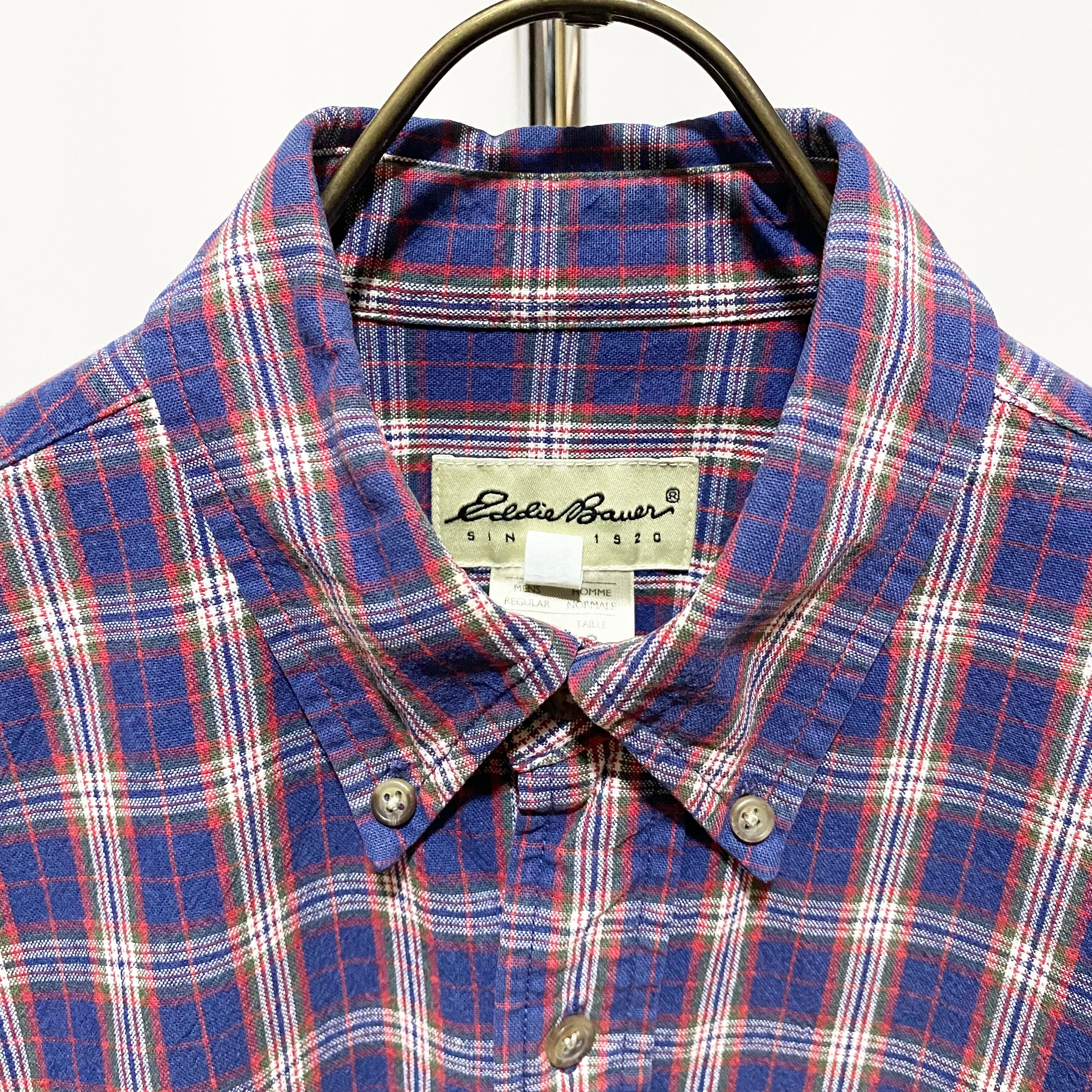 Eddie Bauer Tartan CHK B.D Shirt Navy Red Green White 90s