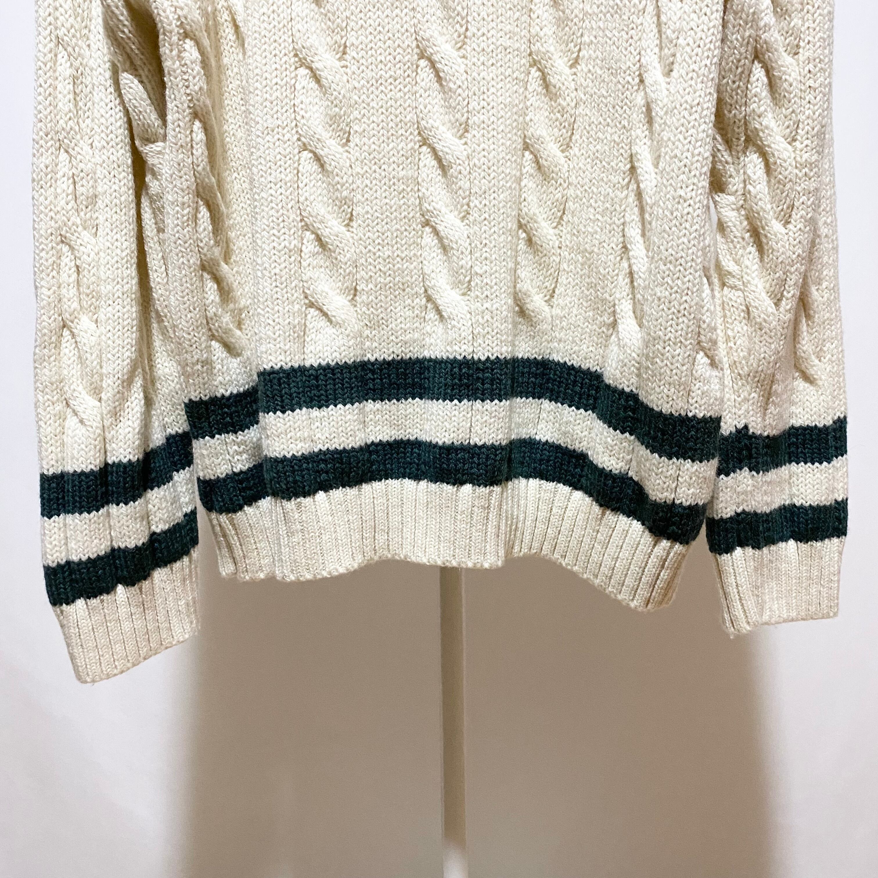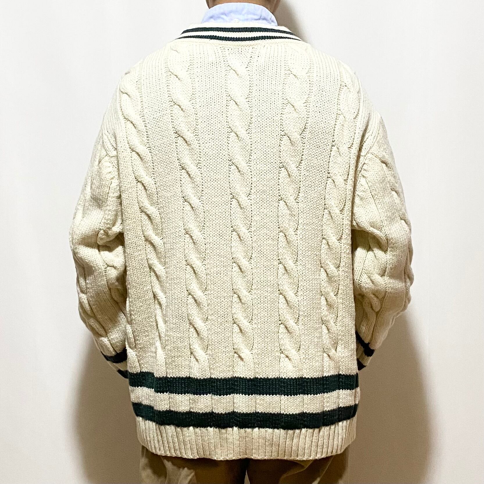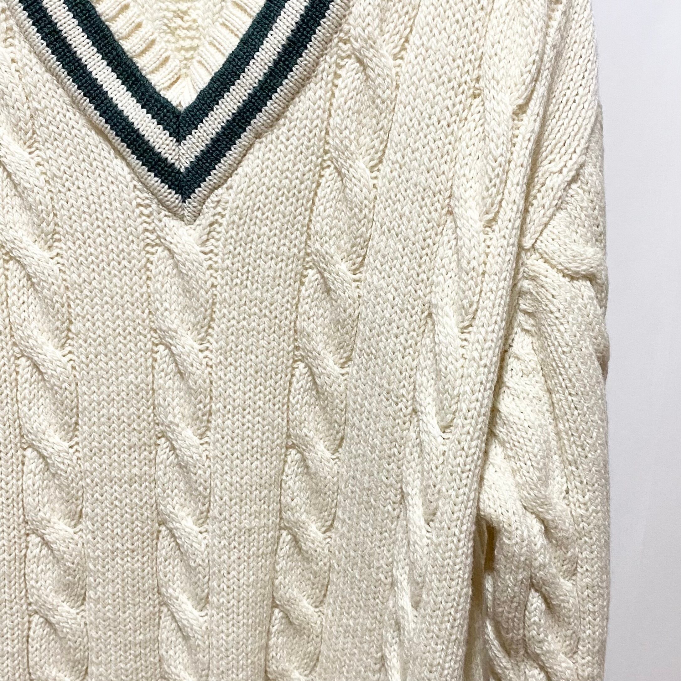 Oldderby Knitwear Tilden Cricket Sweater White Green Made in The United Kingdom